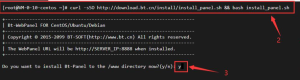回车以后。自动安装中间会有一次询问是否将宝塔安装在服务器上。直接输入:y     (YES的意思)再次回车;直至安装成功!(这里是以LINUX版本命令安装的)