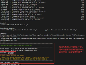 这里是已经安装成功了。红色框住的部分就是后台的登陆地址,账号以及密码(这个后台是可以更改的,除了服务器的IP地址不能改,其它的后缀,端口,账号,密码都可以更改。SSH命令也可以更改)